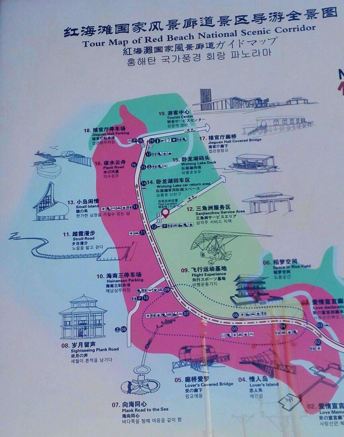 盤(pán)錦南—305國(guó)道—紅海灘大街—旅游路—新榮線—建海路—廊道三角洲大門