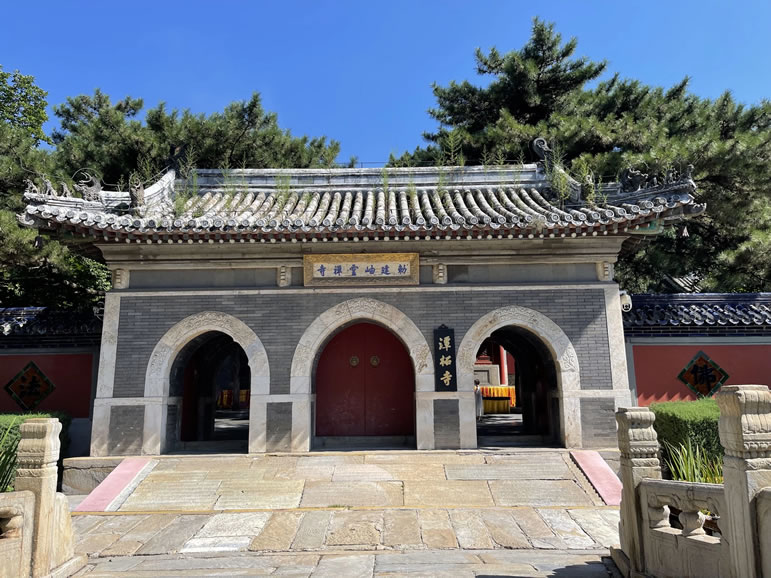 潭柘寺,位于北京市門頭溝區(qū)東南部的潭柘山麓。是北京有記載的年代最久遠(yuǎn)的寺廟。因寺以龍?zhí)逗丸蠘渎劽,俗稱潭柘寺。潭柘寺始建于西晉懷帝永嘉元年(307年),初名嘉福寺。寺內(nèi)現(xiàn)存建筑多為明清遺物。潭柘寺位于寶珠峰南側(cè)坡地上,坐北朝南,寺內(nèi)占地0.025平方千米,寺外占地1.12平方千米,加上周圍由潭柘寺所管轄的森林和山場,總面積達(dá)1.21平方千米以上。寺內(nèi)建筑依山勢而建,北高南低。全寺建筑共分為中路、東路、西路和塔院等幾大部分,構(gòu)成潭柘寺的核心建筑群體。潭柘寺是北京早期佛教文化的發(fā)祥地之一,北京民間有“先有潭柘寺,后有幽州城”的諺語。其建筑規(guī)模亦當(dāng)屬京城寺院之最。