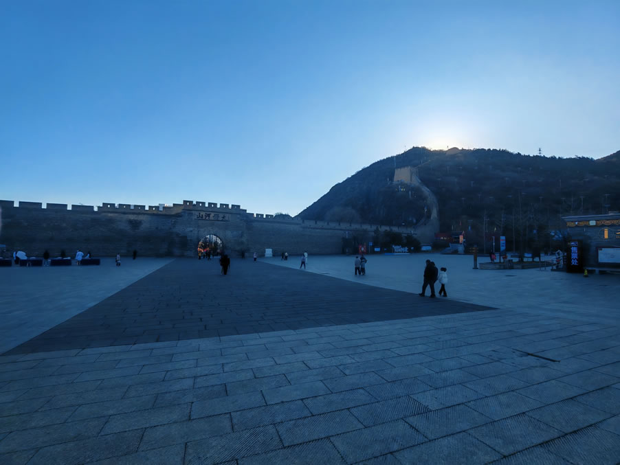 - 西境門廣場(chǎng)觀景臺(tái)廣角鏡頭框住長城。