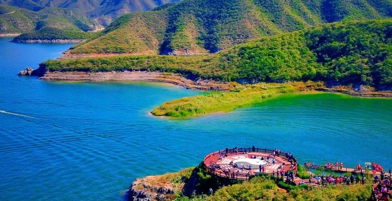 易水湖,原名安格莊水庫,位于河北省保定市易縣縣城西南25千米處,距北京150千米,距雄安新區(qū)80千米,易水湖南側(cè)與狼牙山相連,北側(cè)是紫荊關(guān),西側(cè)是五峰寨,東側(cè)是九龍山,被稱為“北方小桂林”。易水湖是20世紀(jì)50年代利用四周高聳的山勢而修建的一座人工湖。易水湖水域面積約27平方千米,容量為3.9億立方米,最深處達(dá)48.5米。易水湖屬海河流域,大清河水系。易水湖依托山水自然資源和易文化,開發(fā)為度假區(qū),已建有易水文化休閑度假小鎮(zhèn)、養(yǎng)生島康養(yǎng)小鎮(zhèn)、老子峰3100米臨水棧道、高端度假湖景酒店、易水山谷、水上運(yùn)動(dòng)等業(yè)態(tài)項(xiàng)目。