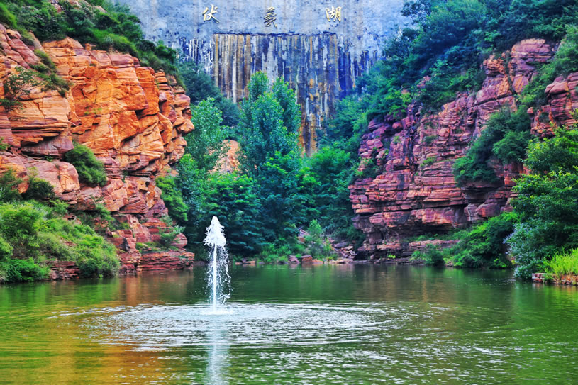 伏羲大峽谷位于河南省鄭州新密市西北20公里的伏羲山旅游區(qū)內(nèi),是一條以典型紅巖嶂谷群地質(zhì)地貌景觀為主的峽谷景區(qū)。伏羲山屬于嵩山山脈向東延伸部分,主峰五指嶺1108.5米,橫跨伏羲山全境。景區(qū)氣候溫潤,四季分明,年均溫11.6℃,比市區(qū)低2.7℃;景區(qū)植被茂密、物種繁多、綠樹掩映、花木扶疏,有千年以上的古樹名木數(shù)十棵,其中具有“活植物化石”之稱的古亢樹,是伏羲山特有的樹種。景區(qū)終年流水不斷,谷底飛瀑、跌水、深潭、平湖,清幽涼爽,姿態(tài)萬千,風(fēng)景秀美,巨大的巖石像被打磨過似的,平坦如鏡,潔凈光滑,游客可以在這里享受世間少有的“巖石浴”;峽谷兩岸巖石兀立,巖壁上天然石梯懸于空中,形形色色的人物以及動物的形象惟妙惟肖?傄(guī)劃面積共5.3平方公里,以伏羲文化和紅石大峽谷為主要特色,分為上下兩部分:上部以臥龍臺、文化隧道、望鄉(xiāng)臺、八卦臺、萬年栗、栗仙神祠、女媧補天處、神龜折足、五色石等景點為主,全面反映伏羲文化的形成、發(fā)展、傳播以及對后世的影響;下部以黃龍?zhí)丁ⅫS龍廟、簸萁潭、立龍鍋潭、貫云瀑(龍影瀑)、八分潭、烏龜拜壽、九龍?zhí)、圖騰柱、馬蹄溝、沐云梯、等景點為主,深切感受峽谷風(fēng)光,體驗自然鬼斧神工。