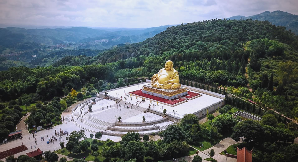 - 特色:世界最大笑佛,高19.99米,取唐末布袋和尚形象,象征跨世紀和平統(tǒng)一;鶅炔孛鞔镀粕蕉U師語錄》殘卷,2025年新增全息投影“佛光普照”奇觀。