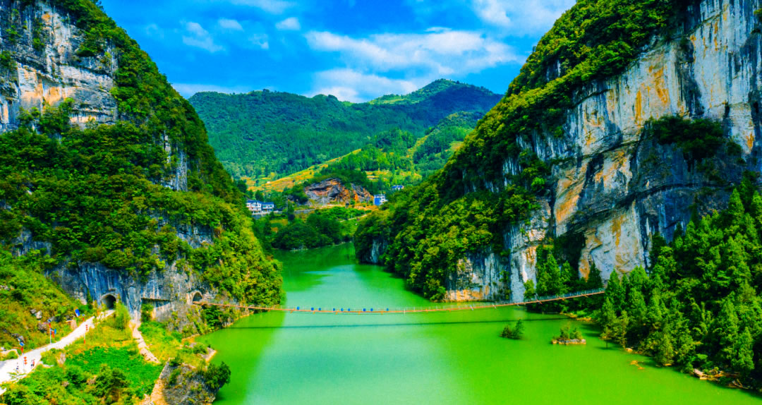 - 芙蓉江峽谷:兩岸懸崖峭壁,江水碧綠如玉,適合漂流、速滑。