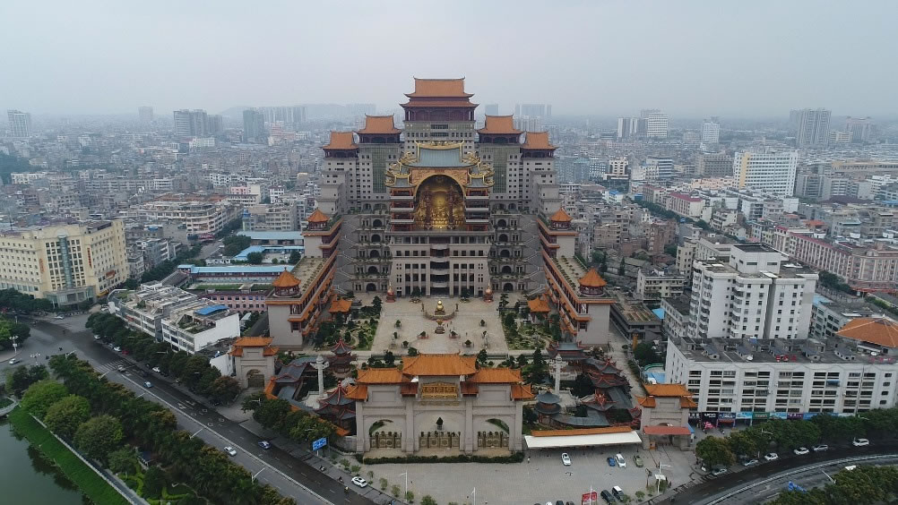 - 地理位置:廣西玉林市玉州區(qū)江濱路461號,國家AAAA級景區(qū),占地70畝,建筑面積14萬平方米,主樓21層高108米,被譽為“玉林版布達拉宮”,集雕塑藝術、民俗文化、珍寶展示于一體。