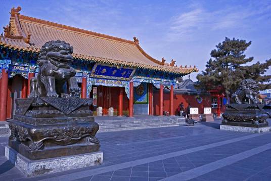 大召,明代稱(chēng)“弘慈寺”,歷史上又有“銀佛寺”“大乘法輪召”“甘珠爾廟”“帝廟”等多種稱(chēng)謂。大召,是一座大藏傳佛教寺院,是呼和浩特最早建成的黃教寺院,也是蒙古地區(qū)僅晚于美岱召的蒙古人皈依黃教初期所建的大型寺院之一,屬于格魯派(黃教)。占地面積約3萬(wàn)平方米,其中建筑面積為8000多平方米。大召寺院座北向南,總體布局是伽藍(lán)七堂形制,由正院、東倉(cāng)和西倉(cāng)三大院落單位成,東西兩倉(cāng)各有倉(cāng)門(mén),北端互通構(gòu)成環(huán)繞寺廟的甬道。主軸線上由山門(mén)、天王殿、菩提過(guò)殿、大雄寶殿和九間樓組成。大召的藏品豐富,堪稱(chēng)大召“三絕”的銀佛、龍雕、壁畫(huà)佛殿內(nèi)的各種彩塑、金銅造像、晾佛節(jié)展開(kāi)的巨幅唐卡、108部的甘珠爾經(jīng)卷,以及宗教活動(dòng)使用的各種法器,面具等都是較珍貴的歷史文物和藝術(shù)珍品。
