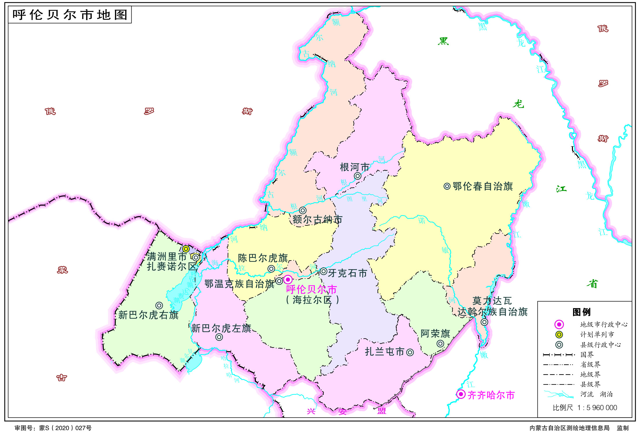 呼倫貝爾市位于內(nèi)蒙古自治區(qū)東北部,東西630千米,南北700千米,總面積25.3萬(wàn)平方千米,相當(dāng)于山東省與江蘇省兩省之和。市域東鄰黑龍江省,西、北與蒙古國(guó)、俄羅斯相接壤,與俄羅斯、蒙古國(guó)邊境線1733.32千米,其中:中俄邊境線1051.08千米,中蒙邊境682.24千米。