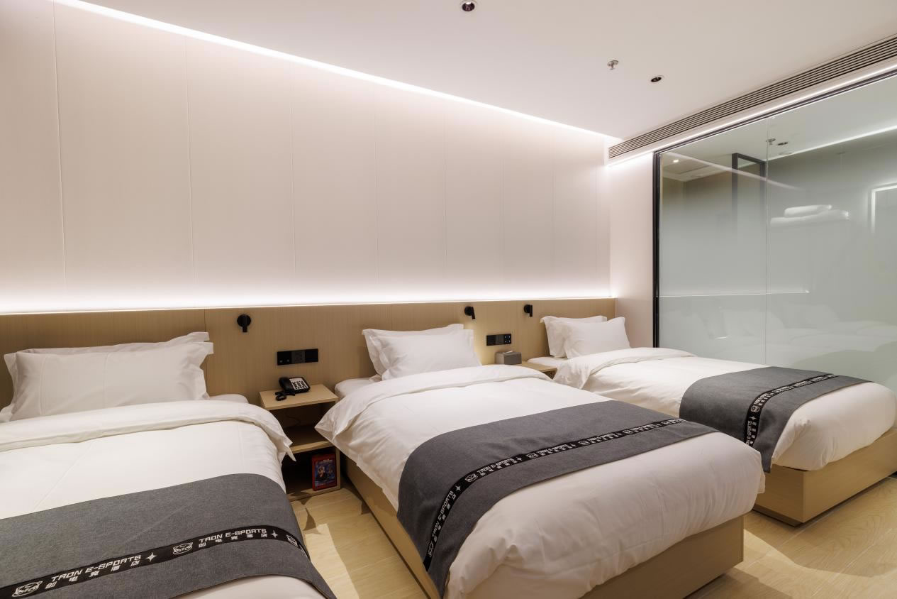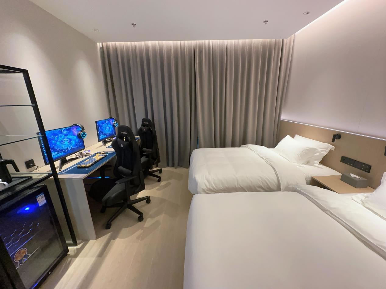 創(chuàng)電競(jìng)智慧酒店3.0(北京房山良鄉(xiāng)大學(xué)城店)酒店房型種類豐富,配備了電競(jìng)大床房、電競(jìng)雙床房、電競(jìng)?cè)碎g、電競(jìng)四人間、電競(jìng)五人間等不同房型,共計(jì)70個(gè)房間,最多可容納 161人。無論是獨(dú)俠競(jìng)技、閨蜜體驗(yàn)、情侶暢玩、還是兄弟開黑,創(chuàng)電競(jìng)都能滿足需求。
