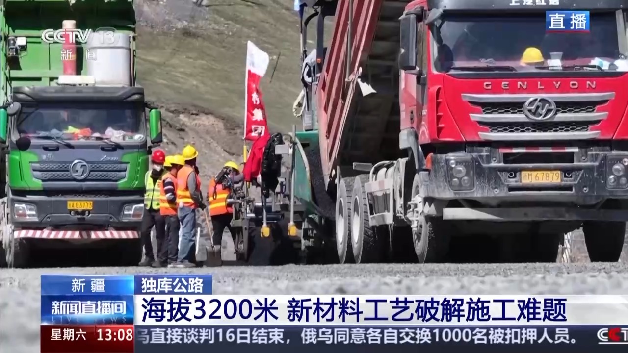 因?yàn)檫@里是高寒高海拔地區(qū),記者腳下的山體都是永久凍土層,氣溫變化凍土層會(huì)出現(xiàn)凍融的情況,凍融就是天氣冷就會(huì)凍住結(jié)冰,天氣暖和就會(huì)融化,凍融的出現(xiàn)會(huì)讓道路出現(xiàn)沉陷的情況。為了應(yīng)對(duì)這種凍土層,公路部門也是采取了一種新的試驗(yàn)工藝,這種工藝看起來就和常見的水泥很像,但是這種新工藝具有輕質(zhì)、耐久的特點(diǎn),適合在高原凍土鋪路。