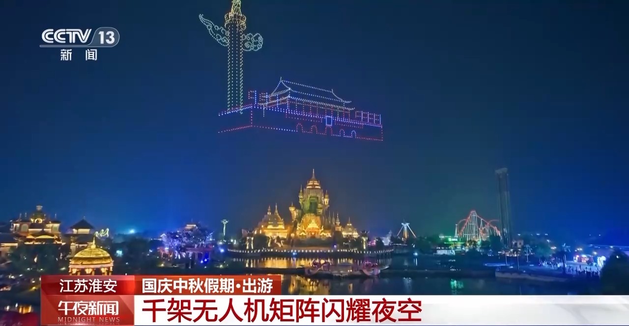 夜幕降臨,在江蘇淮安西游樂(lè)園,1600架無(wú)人機(jī)同步升空,組成“我愛(ài)你中國(guó)”、天安門(mén)、璀璨中國(guó)等造型圖案,科技與光影的碰撞,譜寫(xiě)了一曲璀璨奪目的 “空中詩(shī)篇”。全新升級(jí)的“國(guó)慶煙花大會(huì)”更是將現(xiàn)場(chǎng)氛圍推向高潮。絢爛的煙花與水幕交織相映,形成了一幅立體畫(huà)卷,營(yíng)造出了既浪漫又熱烈的節(jié)日氛圍。