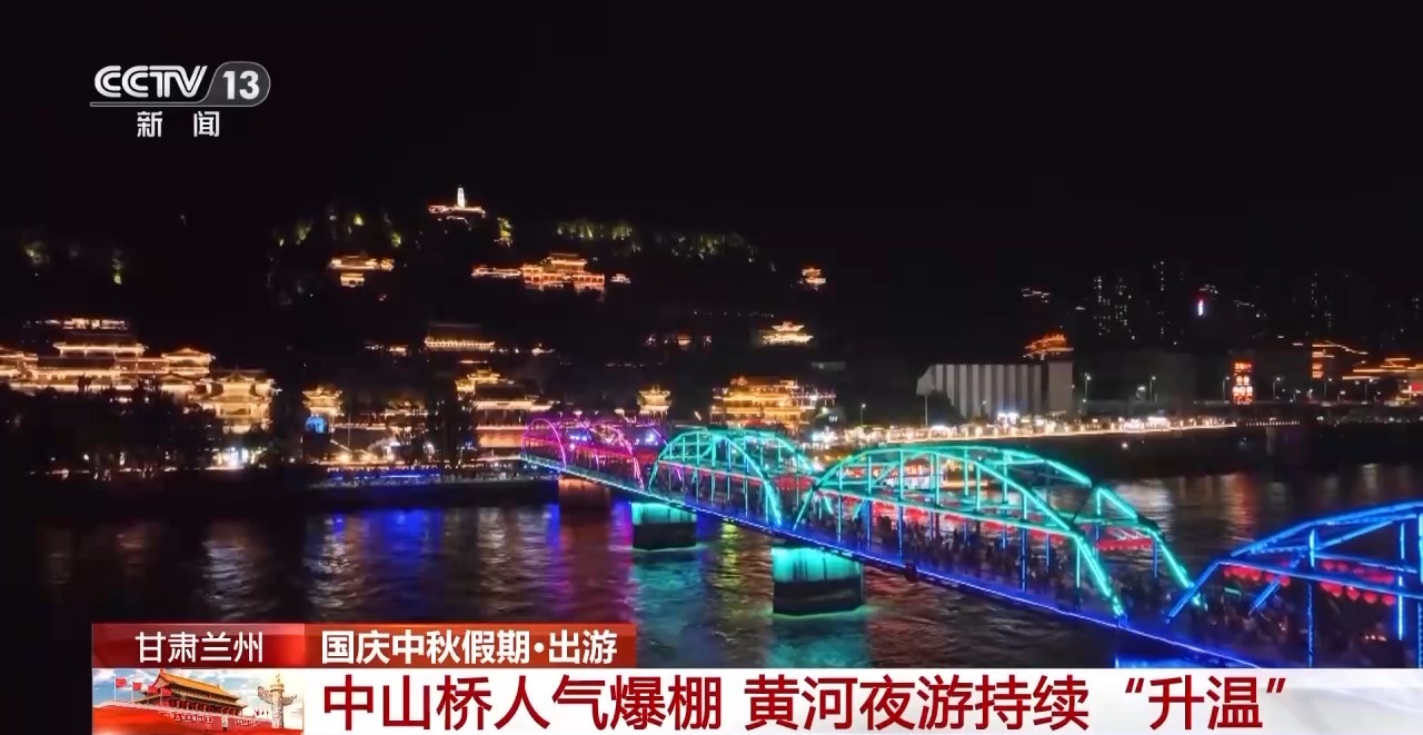 這兩天,甘肅蘭州百年鐵橋披上七彩霓裳。游客們或漫步橋上,感受晚風(fēng)與燈光交融的浪漫,或登上“夜游黃河”游船,沿航線(xiàn)欣賞兩岸都市夜景,在古今交織中體驗(yàn)蘭州新活力。在金城關(guān)景區(qū),璀璨的燈光與奔流的黃河共繪節(jié)日里的靚麗畫(huà)卷。游客們品嘗著當(dāng)?shù)靥厣〕,在文?chuàng)攤位前選購(gòu)黃河主題冰箱貼、書(shū)簽等商品,感受假日愜意時(shí)光。