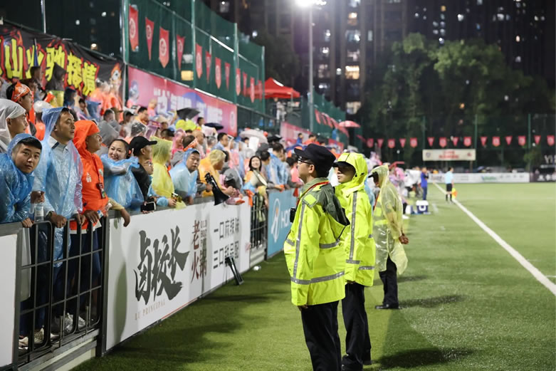 在此過程中,民警、輔警在嚴謹安保的同時,還用心提供便民服務(wù)。期間,他們耐心幫助小球迷穿好雨衣、協(xié)助群眾尋找遺失物品、攙扶行動不便者通過積水路段,用實際行動為賽場增添溫暖。