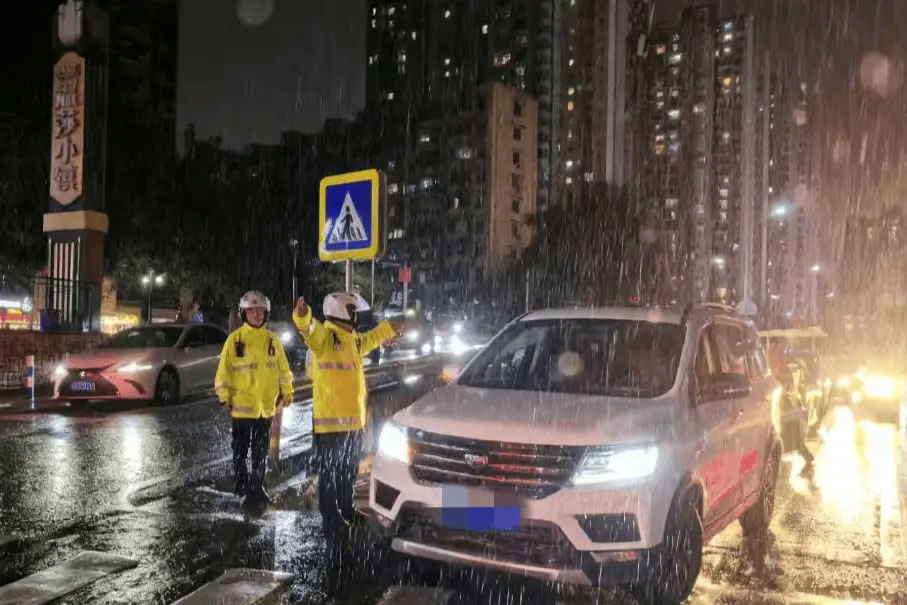 交管警力展開交通指揮疏導(dǎo)(沙坪壩區(qū)公安分局供圖)