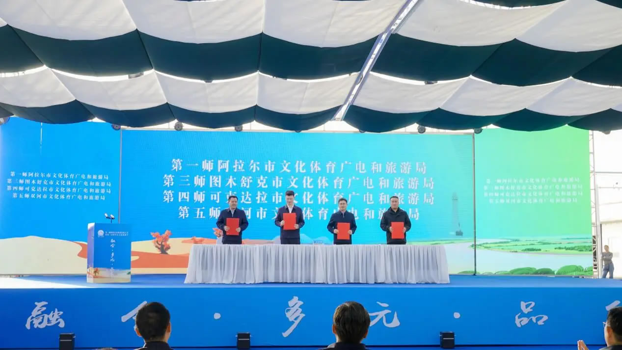 當(dāng)天,第一師阿拉爾市旅游發(fā)展大會暨第三屆塔里木文化旅游節(jié)文旅客商推介會同步舉辦。第一師阿拉爾市文化體育廣電和旅游局分別與第三師圖木舒克市、第四師可克達(dá)拉市、第五師雙河市的文化體育廣電和旅游局簽署合作共建協(xié)議,在旅游產(chǎn)業(yè)領(lǐng)域深化合作,推動區(qū)域文旅協(xié)同發(fā)展。第一師阿拉爾市文化體育廣電和旅游局、塔里木文旅集團(tuán),以及第一師四團(tuán)、七團(tuán)、十六團(tuán)依次登臺,重點(diǎn)推介了涵蓋沙漠探險(xiǎn)、生態(tài)觀光、民俗體驗(yàn)等多個領(lǐng)域的文旅項(xiàng)目。