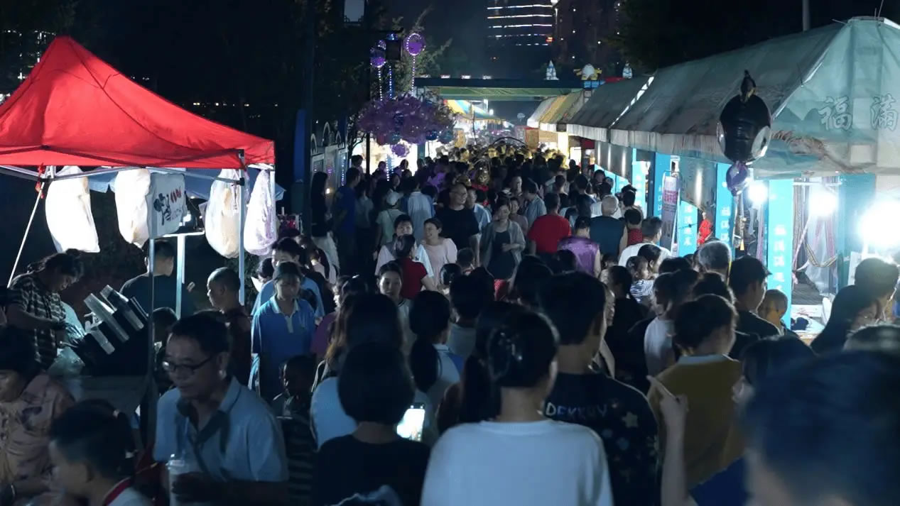 活動現(xiàn)場,產(chǎn)品展銷、非遺展演、親子游樂、特色美食四大板塊同步開啟,非遺火壺、浪漫銀河冷焰瀑布秀、非遺打鐵花等輪番上演。活動首晚便吸引市民游客超5000人次,叫賣聲、音樂聲交織,摩肩接踵的人群中涌動著消費熱潮。