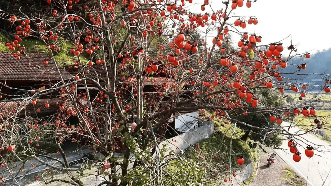樂安鋪鄉(xiāng)聯(lián)豐村的山林同樣熱鬧非凡,蜿蜒山路旁的槭樹、楓香樹層層疊疊,紅褐與金黃交織成絢爛色塊,與錯(cuò)落分布的農(nóng)家院落相映成趣。隨著初冬的寒意悄然降臨,聯(lián)豐村的柿子樹“燃”起一片熱烈的“紅火”,熟透的柿子,宛如一盞盞喜慶的紅燈籠,將山村裝點(diǎn)得明艷動(dòng)人,在陽光輕撫下,橙紅的柿子透著誘人光澤,與遠(yuǎn)處的山林相襯,色彩斑斕。游客們或手持相機(jī),定格“柿”景,歡聲笑語在鄉(xiāng)村回蕩。引得游人紛至沓來,沉醉于這獨(dú)特的田園冬韻之中。