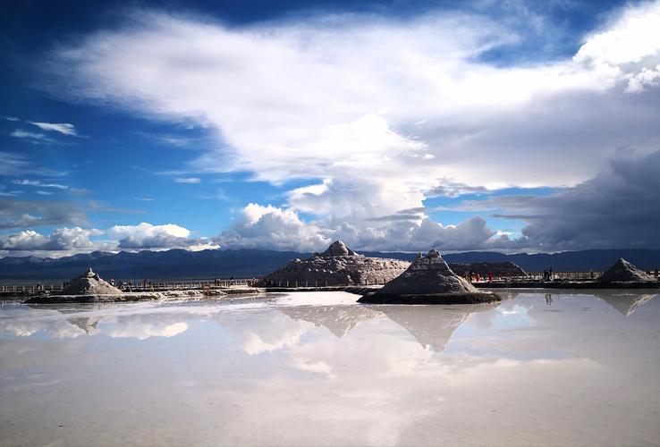 茶卡鹽湖四周雪山環(huán)繞,平靜的湖面像鏡子一樣,反射著美麗的令人陶醉的天空景色,被譽(yù)為“中國的天空之鏡”,置身于鹽的世界,漫步湖面如行走云端之上,水映天,天接地,人在湖間走,宛如畫中游。茶卡鹽湖一年四季美景連連,春日里低懸于天際的白云落在湖水里,分不清是鹽更白還是云更白;夏季碧波蕩漾的湖水翡翠一般綠的沁人心扉;秋天干涸的湖面冰清玉潔,平坦無垠;冬天的蒼涼荒蕪更具挑戰(zhàn)。