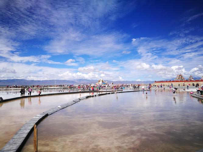 茶卡鹽湖景區(qū)擁有國內(nèi)首個(gè)鹽湖生態(tài)環(huán)保型觀光游船,游客可以乘小火車到達(dá)鹽湖碼頭站后乘游艇,去領(lǐng)略現(xiàn)代工業(yè)采鹽的風(fēng)景。