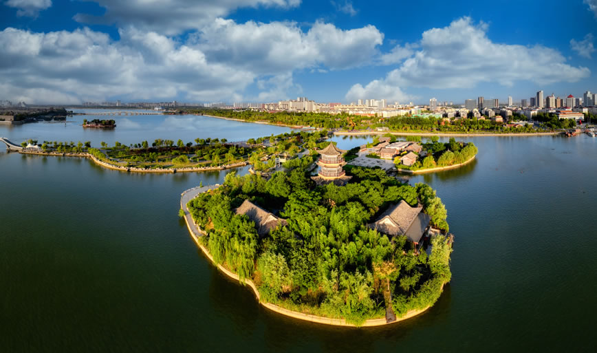 國家4A級旅游區(qū)、山東省重點服務業(yè)園區(qū)、山東省生態(tài)漁業(yè)示范園、國家垂釣基地,也是“江北水城·運河古都——生態(tài)聊城”城市品牌的核心區(qū)域。位于聊城市中心城區(qū),由10個湖區(qū)和20塊水面組成,總面積6.3平方千米,湖岸線長達16千米,有“南有西子,北有東昌”之美譽,是中國江北地區(qū)罕見的大型城內湖泊。東昌湖湖始于北宋熙寧三年(1070年),水深平均達3米,最深處5米。水質清澈,景色宜人,適宜水上游樂項目的開發(fā)與建設。
