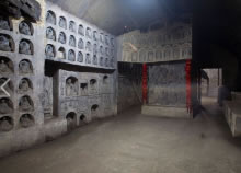 萬佛洞位于千佛山北麓,建于1992年,由莫高集錦、龍門精華、麥積奇觀、云岡薈萃四部分組成,是千佛山的一大勝景。洞長500米,經(jīng)過藝術家精選、濃縮、重構,用仿造的手法塑造佛祖、菩薩、弟子、天王近3萬尊,集敦煌、龍門、麥積山、云岡全國四大石窟的精華于一身。