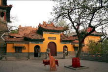 興國禪寺居千佛山山腰,內有大雄寶殿、觀音堂、彌勒殿、對華亭,占地3000平方米,是山東著名香火勝地。據(jù)明成化七年(1471年)石志記載,該寺曾遭兵火破壞,成化四年(1468 年)8月3日,德王府內官蘇賢游覽千佛山,看到當時情景,不勝慨嘆,于是捐資建佛殿、僧房、廚房、糧倉等。寺門朝西,上額刻有原中國佛教協(xié)會主席、書法家趙樸初題寫:"興國禪寺"四字。楹聯(lián)石刻:"暮鼓晨鐘驚醒世間名利客,經(jīng)聲佛號喚回苦海夢迷 人",為濟南清未秀才楊兆慶書寫。殿內塑釋迦牟尼、大悲觀音、地藏王菩薩、十八羅 漢、四大天王。門內兩側,有鐘鼓二樓。進寺門南側,千佛崖石壁上鐫刻佛像多尊。山崖由西向東依次有龍泉洞、極樂洞、洞天福地石坊、對華亭。