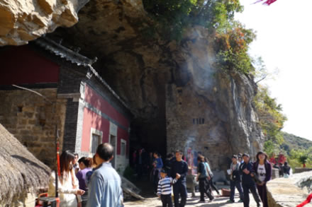 位于旅游北線,傳說為唐賽兒藏“天書劍匣洞”的地方,原先供奉九天玄女,在這可俯瞰潭溪山全景,遙想古人“喝茶賞月,迎彩送霞”之境,是北線最佳觀景點之一,石壁上由天然菩薩像一處。