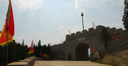 位于旅游北線,根據(jù)唐賽兒起義的資料修建的石質(zhì)城門建筑,是唐三寨古寨的西寨口,也是進(jìn)入北、東、南三處山寨的重要入口,所以又叫“三寨關(guān)”。