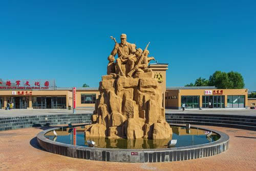 八路軍文化園位于山西省長治市武鄉(xiāng)縣太行西街,背靠的鳳凰山,東臨的馬牧河,整個景區(qū)由前廣場、游客咨詢服務中心、勝利大道、軍藝社、勝利壇、實景劇場、八路村等七部分組成。