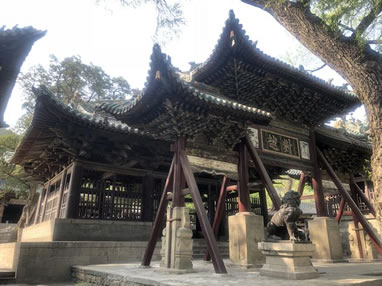 中,即中軸線,從大門入,自水鏡臺起,經(jīng)會仙橋、金人臺、對越坊、獻殿、鐘鼓樓、魚沼飛梁到圣母殿。這是晉祠的主體,建筑結(jié)構(gòu)嚴謹。