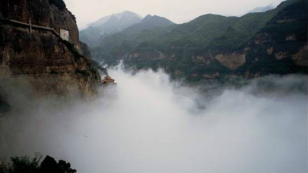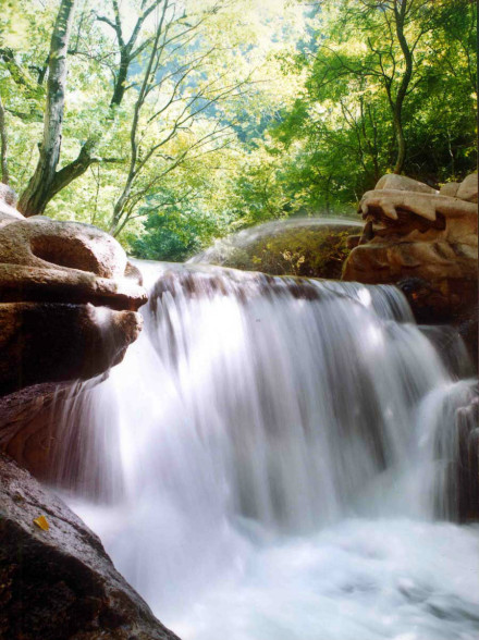8、二十公里的水濤溝、蒼巖、曲徑、奇樹、怪石、山花、野草點綴其間,北魏酈道元《水經(jīng)注》所說的綿山 石桐水千回百轉 ,湍湍流過,蒼鷹低回空谷鳥鳴,組成了一幅奇特的山水畫卷。其中的五龍飛瀑落差80余米,游人可從瀑下通過;水簾洞府瀑流從洞前飛流直下,洞內可容納三四十人。這樣的風光,在北方地區(qū)實屬罕見。