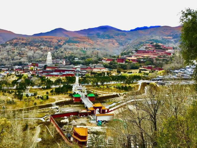 五臺(tái)山位居中國(guó)四大佛教名山之首,稱為“金五臺(tái)”,為文殊菩薩的道場(chǎng)。五臺(tái)山并非一座山,它是坐落于“華北屋脊”之上的一系列山峰群,最高海拔3061米。五座山峰(東臺(tái)望海峰、南臺(tái)錦繡峰、中臺(tái)翠巖峰、西臺(tái)掛月峰、北臺(tái)葉斗峰)環(huán)抱整片區(qū)域,頂無(wú)林木而平坦寬闊,猶如壘土之臺(tái),故而得名。五臺(tái)山是中國(guó)唯一一個(gè)青廟(漢傳佛教)黃廟(藏傳佛教)交相輝映的佛教道場(chǎng),現(xiàn)存宗教活動(dòng)場(chǎng)所共86處,其中多敕建寺院,多朝皇帝前來(lái)參拜。著名的有:顯通寺、塔院寺、菩薩頂、南山寺、黛螺頂、廣濟(jì)寺、萬(wàn)佛閣等。