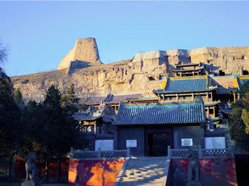 遼金:遼興宗、道宗時期,遼皇室曾對武州山石窟寺進行過延續(xù)十年之久的大規(guī)模修整。修建了石窟前接木構(gòu)窟檐的通樂、靈巖、鯨崇、鎮(zhèn)國、護國、天宮、崇福、童子、華嚴、兜率十座大寺,并對一千余尊佛像進行了整修。遼保大二年(1122年)金兵攻占大同,"寺遭焚劫,靈巖棟宇,掃地?zé)o遺"(《大金西京重修華嚴寺碑》)。金皇統(tǒng)三年至六年(1143-1146年),住持法師稟慧重修"靈巖大閣"(今第三窟外的閣樓),"自是,山門氣象,翕然復(fù)完矣。"(《金碑》)。