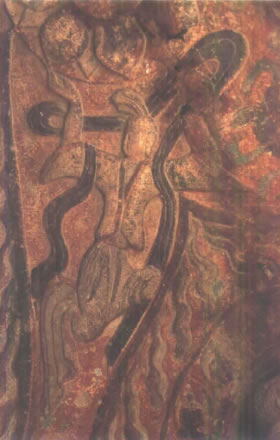 除此之外東壁中層南側(cè)有“鹿苑說法”,西壁對應(yīng)為“彌勒出世”。東壁北側(cè)有“降服火龍”故事龕,西壁中層中央有“降魔成道”故事龕,在“降服火龍”龕外,崇山峻嶺之間有9身瘦骨嶙峋、身著短褲,背囊攀山的梵志形象;在“降魔成道”龕外,有17身面相猙獰,手執(zhí)各種武器,向佛襲擊的魔軍。這些形象的創(chuàng)造,融入了藝術(shù)家對佛經(jīng)故事的理解,生動而夸張,精彩而豐富,令人嘆為觀止。