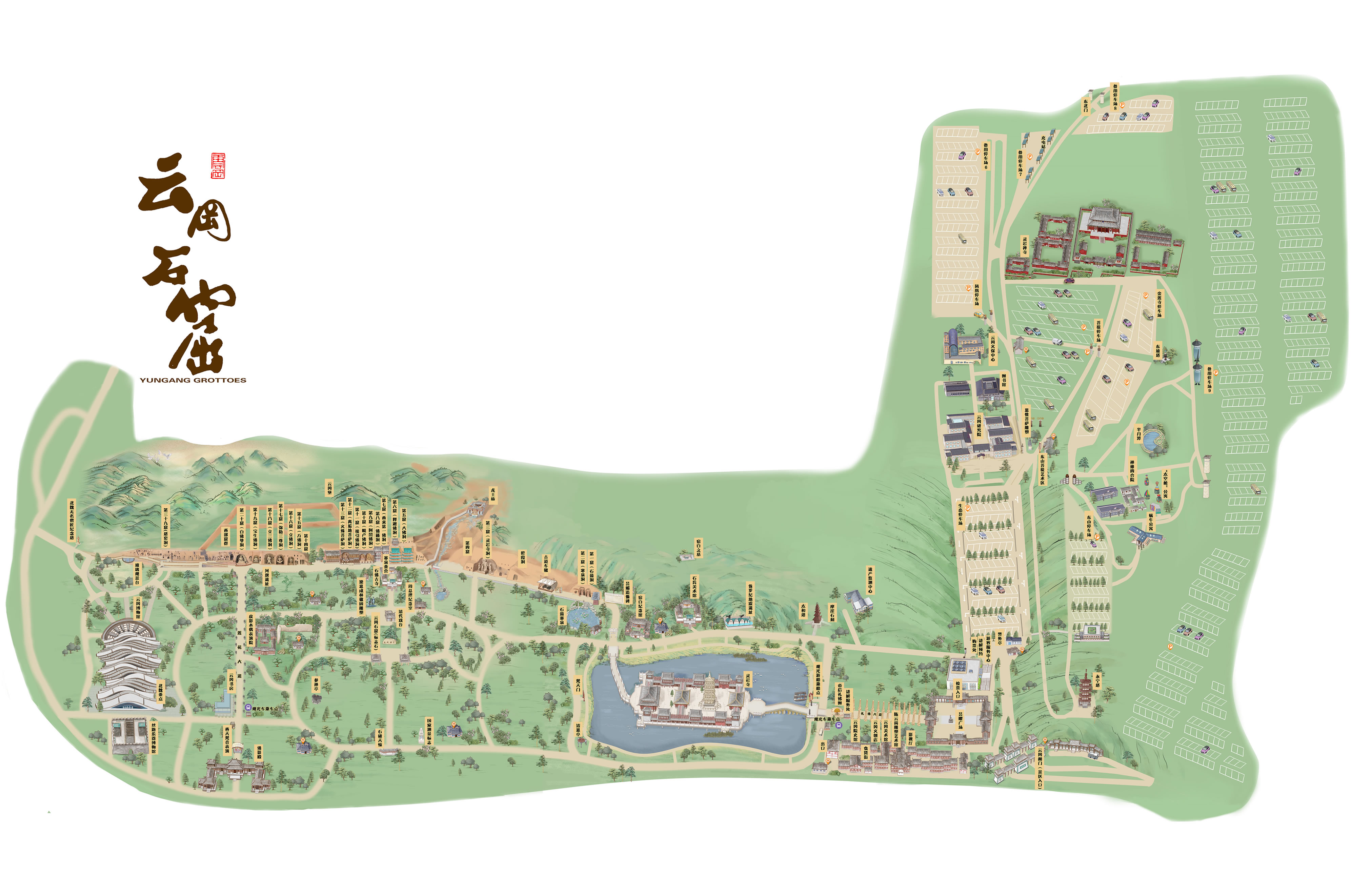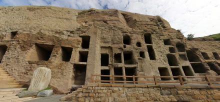 云岡石窟位于中國山西省大同市城西約16公里的武州(周)山南麓、武州川的北岸。石窟依山開鑿,規(guī);趾搿鈩菪蹨,東西綿延約1公里,窟區(qū)自東而西依自然山勢分為東、中、西三區(qū),F(xiàn)存主要洞窟45個,附屬洞窟209個,雕刻面積達18000余平方米。造像最高為17米,最小為2厘米,佛龕約計1100多個,大小造像59000余尊。云岡石窟距今已有1500年的歷史,是佛教藝術(shù)東傳中國后,第一次由一個民族用一個朝代雕作而成皇家風(fēng)范的佛教藝術(shù)寶庫,是公元5世紀中西文化融合的歷史豐碑。1961年3月被國務(wù)院公布為首批全國重點文物保護單位;2001年12月被聯(lián)合國教科文組織批準列入“世界文化遺產(chǎn)”名錄;2007年5月成為國家首批5A級旅游景區(qū)。