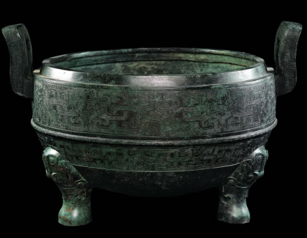 此展品為秦代的青銅器,通高61.00厘米,口徑65.50—71.00厘米,腹深34.00厘米,重212千克,出土于秦始皇帝陵K9901陪葬坑出土。是出土于百戲俑坑的一件青銅鼎,形體碩大,所以稱它秦陵大鼎。此鼎造型穩(wěn)重,上有繁復(fù)精美的紋飾,因與百戲俑同出于一個遺址坑,有學(xué)者認(rèn)為應(yīng)該是舉鼎時的一件道具,也有人認(rèn)為是禮器因為秦末戰(zhàn)亂而被掩埋。