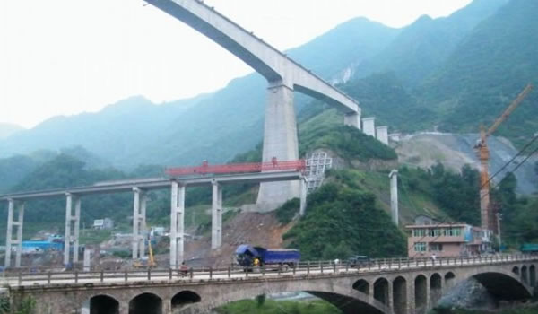 亞洲第一跨 亞洲第一跨位于鎮(zhèn)巴縣巴山鄉(xiāng)兩岔河中游襄渝鐵路Ⅱ線牛角坪雙線特大橋。大橋2006年3月開工,至今年8月12日,該橋主體工程按原計劃順利合龍。主橋墩埋深50米,主墩墩高98米,全長577.4米,鐵路雙線T型預應力混凝土連續(xù)剛構主跨為192米,位居亞洲第一,在世界上僅次于主跨250米的葡萄牙費魯瓦利阿大橋。 據(jù)了解,該橋計劃2009年3月建成交付使用。屆時,高達111.3米的雄偉大橋,將成為襄渝鐵路線上又一道獨特的風景。