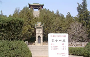 “為冢象祁連山”。元狩六年(前117年),24歲的大司馬驃騎將軍霍去病去世,謚號(hào)景桓侯。漢武帝對(duì)霍去病的死非常悲傷,他調(diào)來玄甲軍,列成陣沿長安一直排到茂陵霍去病墓地。其冢象“祁連山”,以表彰他的不朽功勛;羧ゲ∧沟撞磕媳遍L101.50米,東西寬73米。頂部南北長15米,東西寬8米,占地面積5841.33平方米,封土體積62961.24立方米。墓冢上下,墓地周圍,亂石嶙峋,蒼松翠柏,蔭蔽墓身,一派山林幽深景象。墓南、北面東西兩角,各有回欄曲徑,通向墓頂,成為國家首批“AAAA”級(jí)旅游景區(qū)。