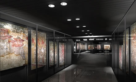 唐代壁畫珍品館是陜西省政府確定的文物旅游方面的重點(diǎn)項(xiàng)目,位于陜西歷史博物館東展館地下一層,總投資7300多萬元(其中陜西省政府補(bǔ)助資金為1800萬元人民幣,意大利政府軟貸款400余萬歐元和贈(zèng)款100萬歐元),建筑面積4200平方米,其中展廳面積3400平方米,展線總長約800米。