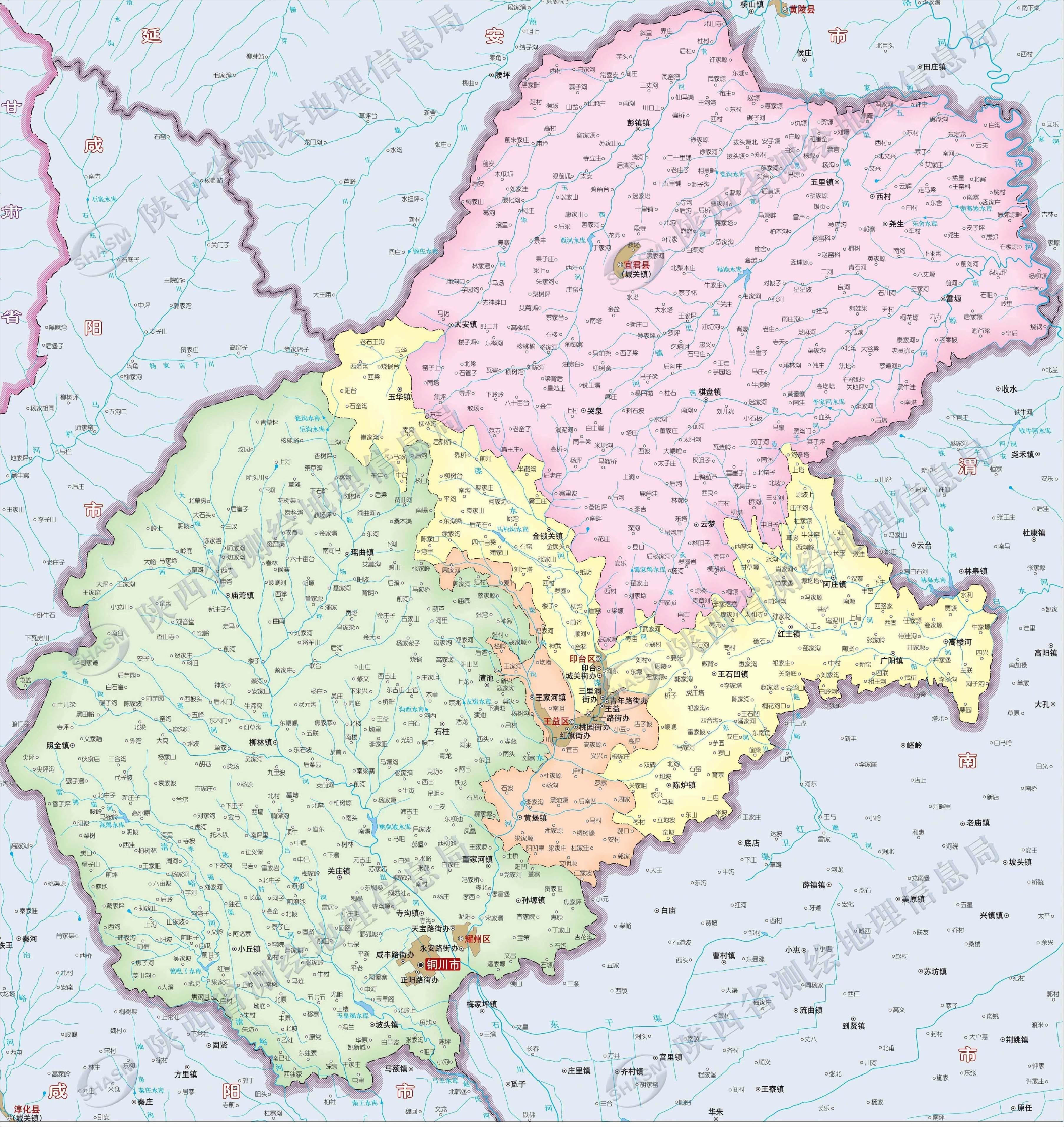 銅川市轄3個(gè)區(qū)、1個(gè)縣: