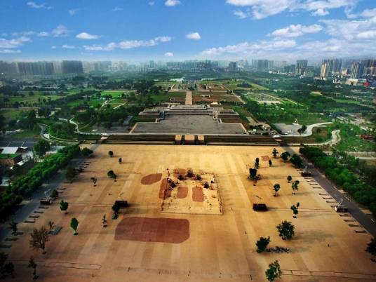 秦朝時(shí)期,建都咸陽,阿房宮大部分面積在今西安市境內(nèi),兵馬俑和秦陵在今西安市境內(nèi)(位于西安市臨潼區(qū))。秦宗廟在渭河南岸,荊軻刺秦王,就發(fā)生在秦章臺(tái)宮(后來的漢未央宮前殿);秦代宮殿布局還沒有形成宮城、皇城和三大殿的布局。秦咸陽城地跨渭河南北。