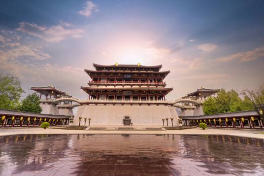 大唐芙蓉園,位于陜西省西安市雁塔區(qū)大雁塔東南側(cè),占地面積1000畝,其中水域面積300畝。大唐芙蓉園是在原唐代芙蓉園遺址以北,仿照唐代皇家園林式樣重新建造的,是中國第一個(gè)全方位展示盛唐風(fēng)貌的大型皇家園林式文化主題公園。