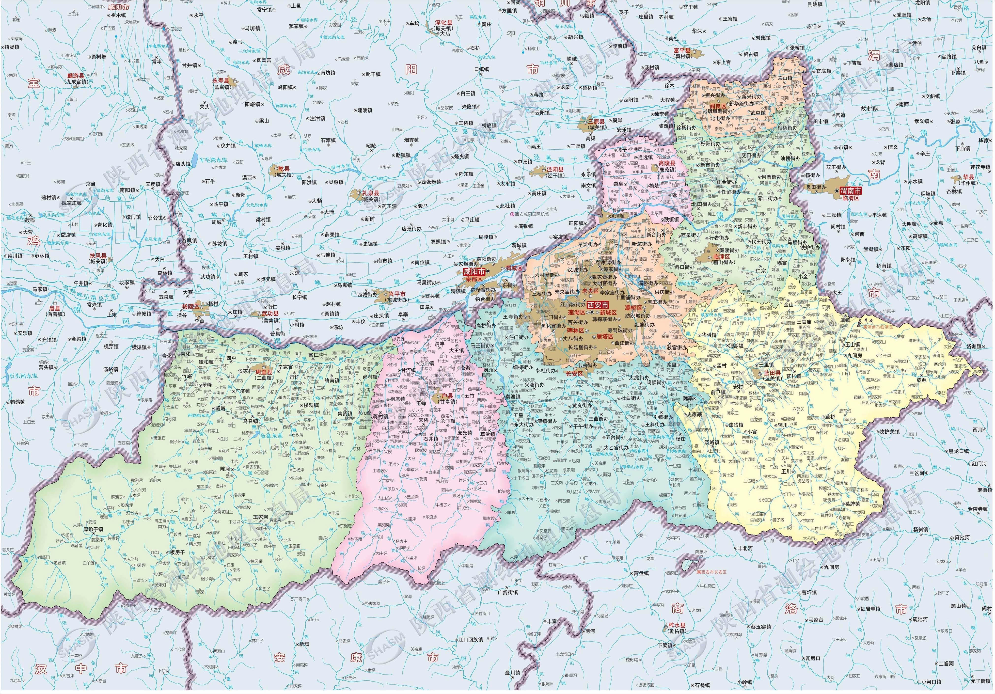 西安市位于黃河流域中部關(guān)中盆地,北臨渭河和黃土高原,南鄰秦嶺。東以零河和灞源山地為界,與渭南市華州區(qū)、商洛市商州區(qū)、洛南縣相接;西以太白山地及青化黃土臺(tái)塬為界,與眉縣、太白縣接壤;南至北秦嶺主脊,與佛坪縣、寧陜縣、柞水縣分界;北至渭河,東北跨渭河,與咸陽市區(qū)、楊凌區(qū)和三原、涇陽、興平、武功、扶風(fēng)、富平等縣(市)相鄰。轄境東西長約204千米,南北寬約116千米,總面積10108平方千米。
