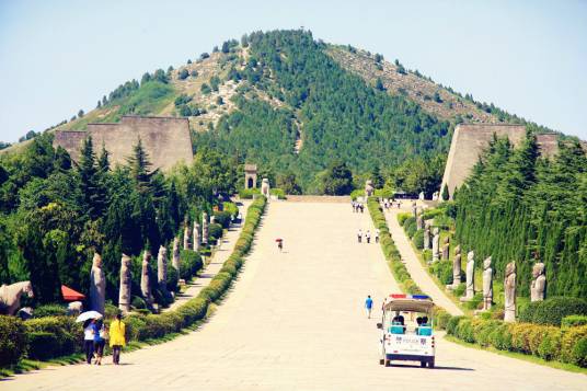 乾陵是第一批全國重點文物保護單位,也是盛唐文化的代表性旅游區(qū),位于乾縣城北6千米的梁山上,是中國唐王朝第三代皇帝高宗李治和中國歷史上唯一的女皇帝武則天的合葬陵,仿唐長安城格局構筑,分為宮城、皇城和外城三個部分。內(nèi)城面積約為230萬平方米,有南朱雀、北玄武、東青龍、西白虎四門,外城周長40千米,F(xiàn)存有華表、翼馬、無字碑、六十一蕃臣石像等精美絕倫的大型石刻100多件。陵園的東南隅分布有17座陪葬墓,出土以唐三彩為代表的珍貴文物4000余件,壁畫1200多平方米,石雕線刻畫150平方米,其中永泰公主墓、章懷太子墓和懿德太子墓地宮已對中外游客開放,為國家4A級旅游景區(qū)。