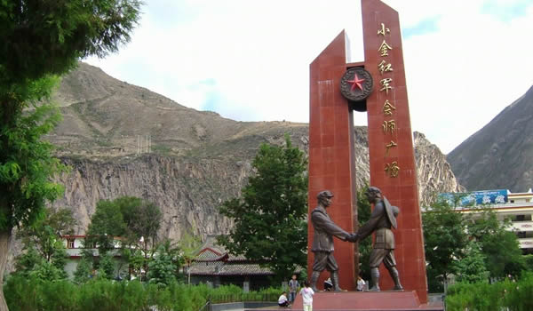小金縣在中國革命史上具有光輝的一頁。1935年,中國工農(nóng)紅軍一方面軍在毛澤東、朱德、周恩來等老一輩無產(chǎn)階級革命家的帶領(lǐng)下,餐風(fēng)露宿,歷盡艱辛,翻越了長征途中的第一座大雪山—夾金山,與紅四方面軍在該縣達(dá)維鄉(xiāng)勝利會師;在美興鎮(zhèn)天主教堂召開了團(tuán)以上的干部參加的“同樂會”;在兩河口(今兩河鄉(xiāng))召開了具有重大歷史意義的中共中央政治局?jǐn)U大會議。勤勞勇敢的小金人民節(jié)衣縮食支援紅軍,一千多名優(yōu)秀兒女參加了紅軍,為長征和中國革命勝利作出了積極貢獻(xiàn)。今年5月,由國務(wù)院核定批準(zhǔn),國家文化部公布了全國第六批重點文物保護(hù)單位和第一批非物質(zhì)文化遺產(chǎn)目錄。小金縣紅一、四方面軍會師遺址(達(dá)維會師橋、紅軍“懋功同樂會”遺址——天主教堂)和“兩河口政治局會議”會址榜上有名。