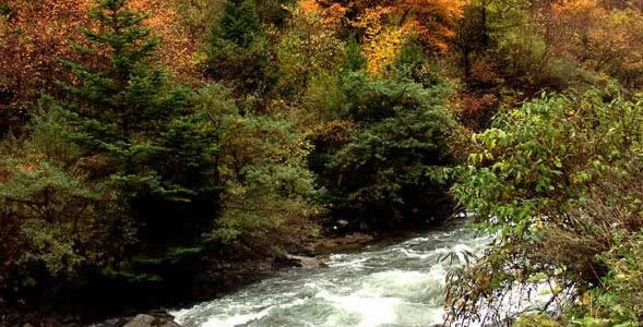 奶子溝:在藏語(yǔ)中是美麗富饒、幸福安寧之意。奶子溝八十里彩林風(fēng)情谷因身處深谷獨(dú)享清幽雅靜的奶子溝而得名,又以美甲天下的彩林世界而聞名。這里植被豐茂,陽(yáng)光燦爛,氧氣充足,是個(gè)天然的大“氧吧”。奶子溝彩林洋洋灑灑長(zhǎng)達(dá)八十里,蔚為壯觀。樹種主要由樺樹、松樹、柏樹、楓樹和各種喬木組成,還有不同色彩的針葉林、闊葉林、次生林、灌木叢點(diǎn)綴其間,密密麻麻地覆蓋了一坡又一坡。在純凈的藍(lán)天底下,紫紅、粉紅、橘紅、金紅、深黃、草綠、黃綠、棕紅、褐色的樹木形成了“萬類霜天競(jìng)自由”之勢(shì)。進(jìn)入彩林世界你會(huì)感覺進(jìn)了油彩的世界,任你語(yǔ)言學(xué)家、色彩學(xué)家在它面前都會(huì)感到詞匯的匱乏,色彩的蒼白。