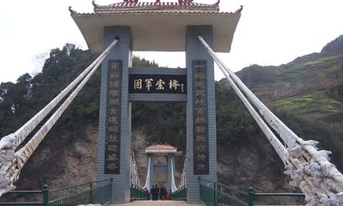 固軍索橋 萬源市固軍鄉(xiāng)中河村是萬源市2005年“7.8”洪災的重災村,洪災沖毀中河村原有鋼絲橋致中河兩岸2900余人無法過河、運輸。固軍中河索橋建設工程得到省以工代賑辦大力支持并被列為2005年省管重點項目,主體工程投資30萬元,其中國家投入以工代賑資金15萬元,下差資金由當?shù)卣腿罕娮曰I解決。該工程由萬源市交通局設計施工圖紙并負責技術(shù)監(jiān)管,橋設計為鋼筋混凝土斜拉索橋,全長95延米,寬3.5米,可承受5噸以下的微型車輛通行。