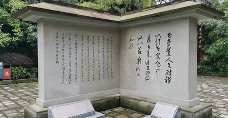 北宋著名詩人、書法家黃庭堅(jiān)謫居戎州時,仿王羲之《蘭亭集序》“流觴曲水”之意,利用天然峽谷而建。池呈九曲形,立八石凳,引巖縫清泉為流,文人墨客列坐其間,可流杯飲酒,吟詩酬唱。此處巖壑清奇、古樹參天、意境清幽,為歷代文人雅士吟唱之所,是宜賓古八景之一。自宋迄今,詠贊之作繁多,或贊涪翁之高風(fēng),或頌筑池之勝績,或發(fā)思古之幽情,或懷時令之感慨,可謂霧集云屯,珠璣累累,頗富時代氣息,風(fēng)采紛呈。一些詩詞歌賦在事后被勒刻于流杯池附近的巖、壑、洞、谷。據(jù)1985年統(tǒng)計(jì),計(jì)有石刻題記128通,字跡基本完整的有64通,最早的紀(jì)年石刻為宋淳熙戊申(1189)年所刻。劉光弟、張大千、黃賓虹、張愛萍等人的字跡也躍然壁上。