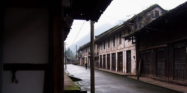 曾家大院 曾家大院位于柳江古鎮(zhèn)北面,通往瓦屋山國家森林公園與玉屏國家森林公園的分道處,建于清朝年間。大院在設(shè)計上花了一番苦心,若從空中俯瞰,其平面圖是一個繁寫的“壽”字。繞墻行走,則有犬牙交錯之感。大院由兩個院落組成,一個大門進出,為兩兄弟的共同財產(chǎn),大院有兩塊大的空地,中間是一幢三樓一底中西合璧式的建筑將大院一分為二。 今天的大門處還有一個大石缸,是以前貯水用的。大院內(nèi)共有三個戲樓,方向、形制各異。早已沒有人居住的大院顯得空空蕩蕩,院落里只有幾只老母雞在找蟲吃。環(huán)顧四周,挑檐、樓廊仍然那么精美,整個大院在當(dāng)年算是一方豪宅了。 最為奇特的是,臨河一邊為了追求壽字的形,其圍墻、房屋的結(jié)構(gòu)如同鋸齒狀,凹凸蜿蜒,顯得非常怪異。那些隨之凹凸蜿蜒的欄桿、房間則顯得神秘莫測,但很協(xié)調(diào),這定然出自民間建筑大師之手。 站在二樓的窗前,往南面眺望,只見峨嵋群峰綿延起伏,輕柔的河風(fēng)時不時撩亂你的頭發(fā),幾聲清脆的鳥鳴劃破寂靜的氛圍,讓你的想象再度飛揚。 |