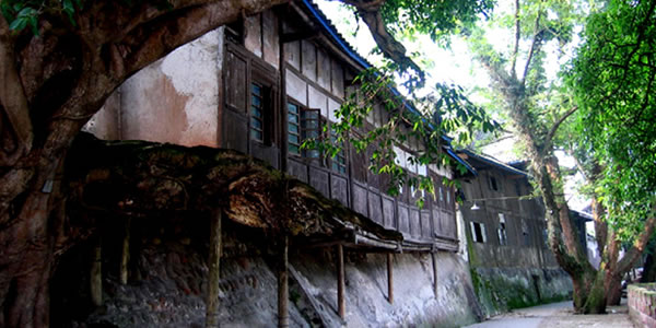 古榕樹下的老街 柳江的老街距曾家大院不過數(shù)十米。穿過狹窄的胡同,一個整潔古樸的小鎮(zhèn)出現(xiàn)了。木門、木窗、青瓦以及瓦上不經(jīng)意長出的幾絲綠色,與鋼筋水泥群碉式的大都市相比,多了幾分詩意。 老街上的住戶很少了。去一個地方,不用多問,就看當(dāng)?shù)厝说难凵癖懵灾蟾。納鞋底的婦女,打川牌的漢子,在家休息的學(xué)子,路上自由奔跑的狗,這就是當(dāng)時小鎮(zhèn)的全部。惟一稍顯嘈雜的聲音便是我們的腳步聲和贊美聲。 順著小鎮(zhèn)往東行走,在遮天蔽日的大榕樹的身影下,到了花溪河邊。遠山含黛,朦朧中竹影搖曳,順著小鎮(zhèn)往東行走,在遮天蔽日的大榕樹的身影下,到了花溪河邊。遠山含黛,朦朧中竹影搖曳,炊煙裊裊,山、樹、青瓦木屋,一并倒映在清亮的小河之中。小河上有人為筑成的石路,當(dāng)?shù)厝朔Q之為跳蹬,是連接兩岸的通道,石路的鋪設(shè)阻止了水的流動,涓涓細流在這里駐足停留,平靜得如同鏡子,成了當(dāng)?shù)厝思忆揭孪床说牡胤,也成了魚蝦談情說愛的平靜港灣。美中不足的是跳蹬上布滿了垃圾,讓不少遠方來客感到一種失落和遺憾。 文物保護單位 走累了,坐在美人靠上是一種愜意,木質(zhì)的建筑顯得很有親切感,屋檐下那些透空鏤花的物件無一不透出藝術(shù)的靈氣。眺望河對岸的一字排開的柳江古鎮(zhèn),能覺察到當(dāng)年主人的幾許孤傲之氣。 時光流逝,物是人非。無論曾家大院修建得多么有氣魄,裝修得多么豪華,在今天都讓人感到莫名的寂寥。偌大的院落鮮有人跡,有時大門緊閉,只能在外面偷偷打望一番。這座豪宅在解放后曾作為鎮(zhèn)政府的辦公樓,為了保護古跡,鎮(zhèn)政府又遷了出來,至今樓上樓下仍散落著許多已經(jīng)無用的日歷、辦公桌等,不知是誰還在二樓的屋檐下養(yǎng)了幾只鴿子,它們與雞成了這里的居民。 這個美其名曰的文物保護單位,到處是灰塵和垃圾,沒有人管理。游客為曾家大院的建筑所折服,然后又在那種殘敗中遺憾而去。保存這樣完好,又極具特色的清代建筑是不多見的,這樣的保護顯然沒有實質(zhì)作用,沒準(zhǔn)哪天某位游客不小心留下的煙頭會將它付之一炬,成為永遠的痛。