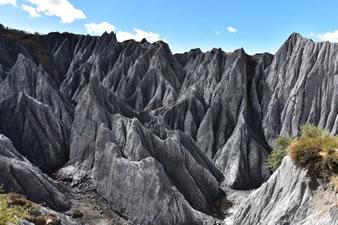 受第四紀(jì)新構(gòu)造運(yùn)動影響,隨著青藏高原的隆起,鮮水河斷裂帶中的巖石,受到擠壓、剪切,發(fā)生破碎、糜化,形成糜棱巖石林。