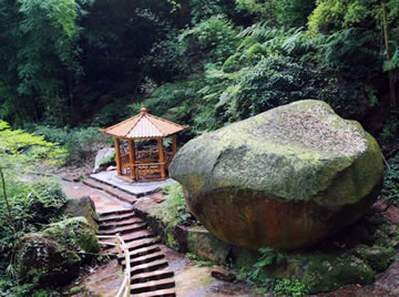 在綿溪河大峽谷東岸,有一塊紅色砂巖,凸兀于路旁,形狀如一只正在彈奏的彈琴蛙,人們把這塊巨石稱之為琴娃石。相傳明朝時,周洪謨將一位名叫穆槐的小姑娘背過綿溪河,不想這位姑娘就此愛上周洪謨,從那以后,穆槐經(jīng)常回到原地等候,希望周洪謨再次出現(xiàn)。而她卻不知道周洪謨已經(jīng)外出求學(xué),再沒出現(xiàn)過。為了打發(fā)枯燥的等候時光,穆槐學(xué)會了彈琴,時間如綿溪河的流水,一去不復(fù)返,穆槐也由一位活潑可愛的小姑娘變成一位白發(fā)蒼蒼的老人,她的執(zhí)著和愛感動了在此煉丹的太上老君,于是太上老君將穆槐變成一只活潑可愛的彈琴蛙,永遠(yuǎn)停留在這里彈琴,等候周洪謨的到來。而今,除了冬季,每到夜晚,在琴蛙石都可以聽見穆槐‘叮叮、咚咚’的彈琴聲。